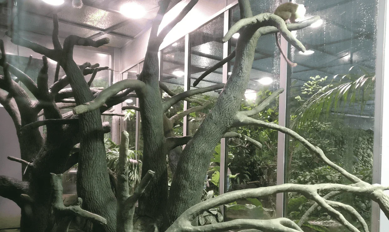 Diese Faultieranlage befindet sich im Universeum, Göteborg. Die Anlage besteht aus einer Reihe künstlicher Bäume, deren Position und Äste sorgfältig geplant wurden, um den Faultieren die optimalen Bedingungen für ihre Fortbewegung in der Anlage zu bieten.