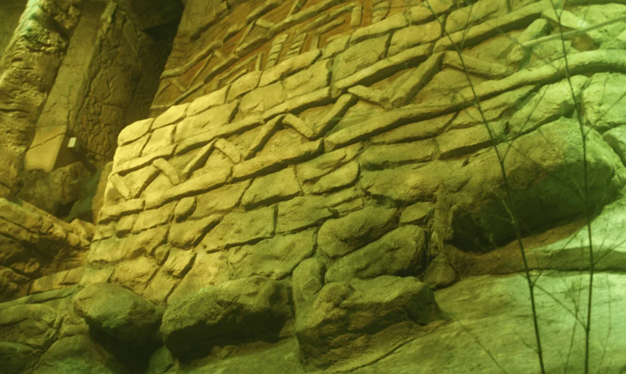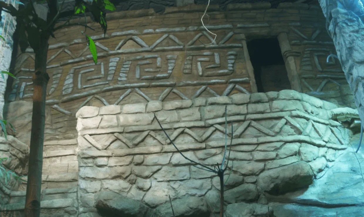Im Regenwaldabschnitt des Universeum wurde diese Wand in einen Chachapoya-Tempel verwandelt, um den Besuchern ein realistischeres und spannenderes Erlebnis zu bieten, wenn sie durch den Regenwald gehen. Die Chachapoya lebten in den Anden im Amazonasgebiet, im heutigen Peru. Sie wurden kurzzeitig von den Inkas besetzt, aber als die Spanier 1535 ankamen, gingen die Chachapoya eine Allianz mit den Spaniern ein, um ihr Land von den Inkas zurückzuerobern. 100 Jahre später war jedoch der Großteil der Chachapoya durch die von den Spaniern eingeschleppten Krankheiten ausgelöscht.